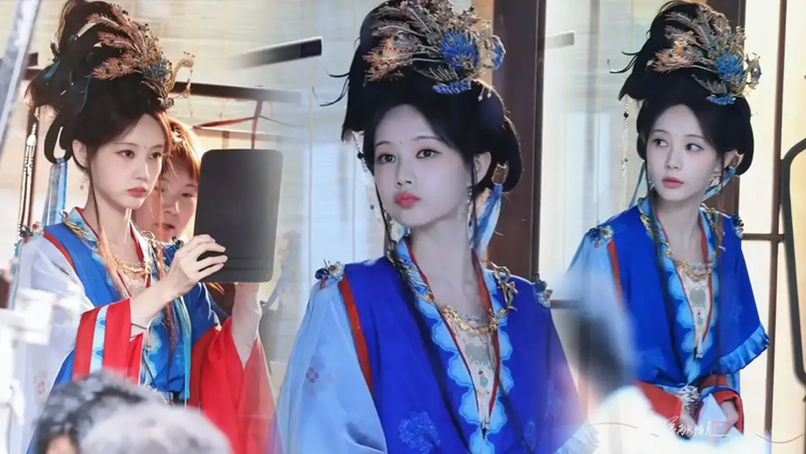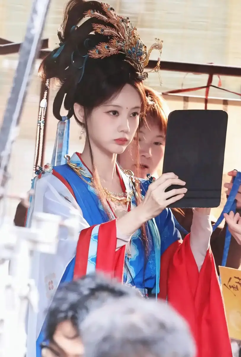 리이통은 푸른색 의상에 같은 색의 긴 리본 장식을 매치하고, 미간에는 붉은 화전을 더해 화사하면서도 독특한 분위기를 자아냈다. 머리에는 화려한 장식을 더해 고급스럽고 기품 있는 이미지를 완성했다.